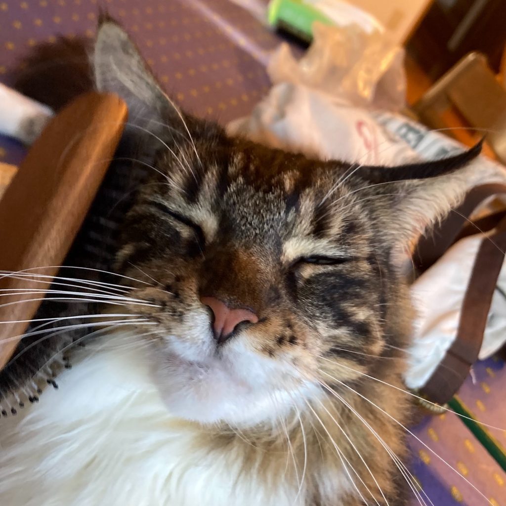 お留守番中のショコラさんです😊大好きなブラッシング❤️うっとり〜🍀長丁場頑張りましたぁ🥰