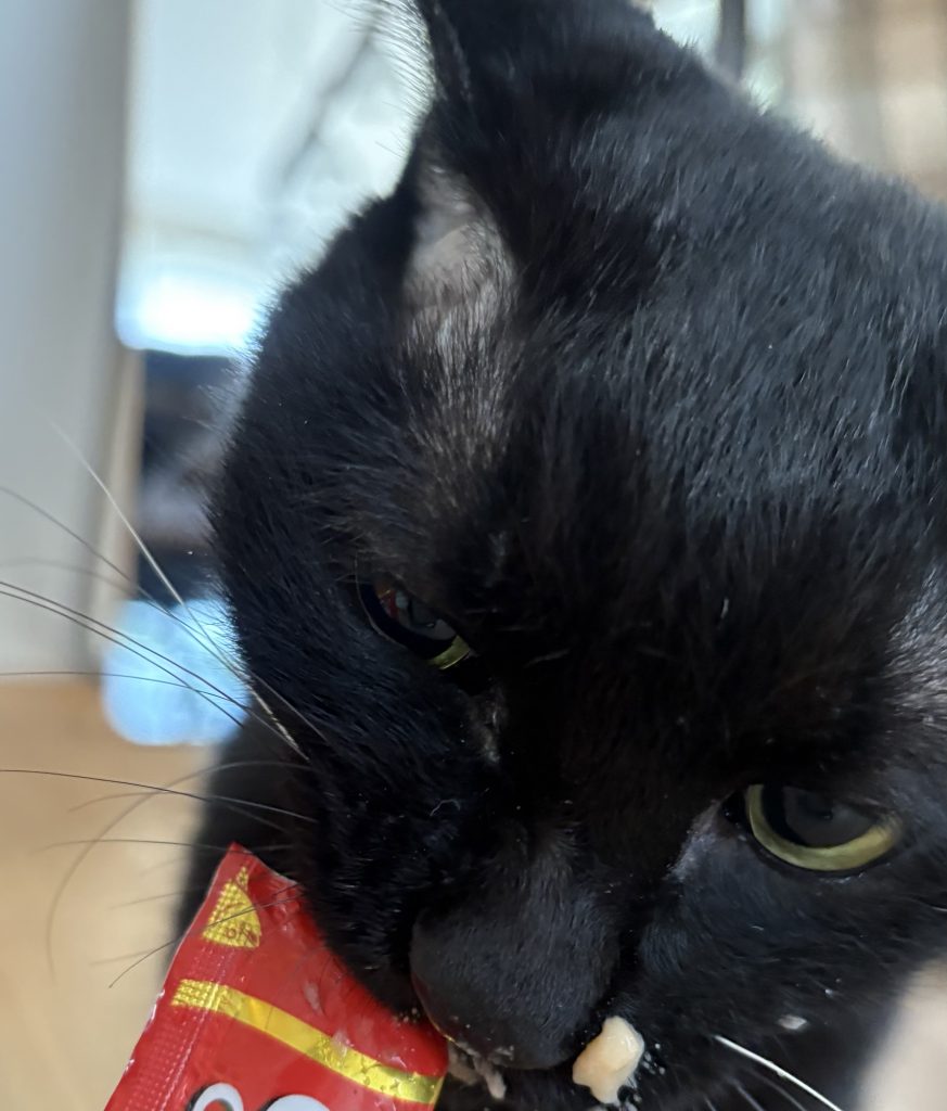 おやつ大好きチョビさんです😊うまっ‼️最高〜‼️とのこと🍀です🥰