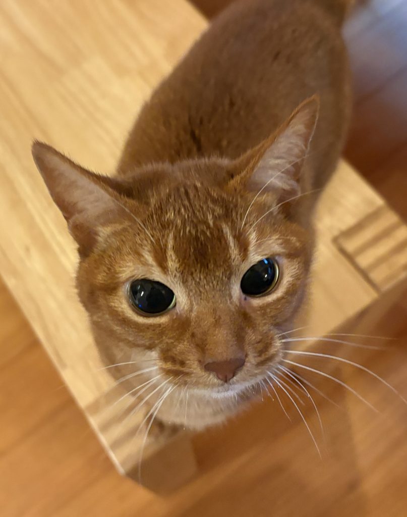 お留守番のムーンさんです😊そうです!そんなぬ見ないで下さい😅今、やってます🍀大好きなカニカマおやつまち〜🥰
