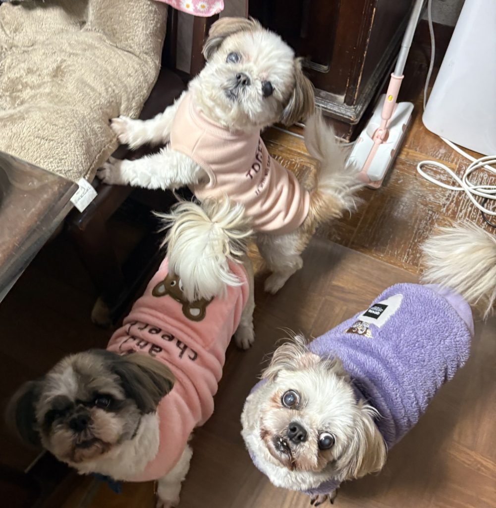 お留守番中のまりさん、あんこさん、チャコさん😊腹へったぁ‼️待ちきれん‼️とばかりの催促キラキラ光線です🥰