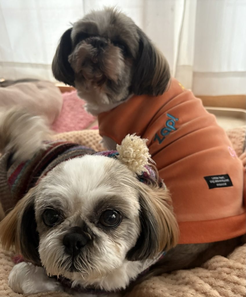 お留守番中のチャコさんとりんさんです😊雪が降りそうな鎌倉⛄️くっつき虫すんになればあったかです🥰