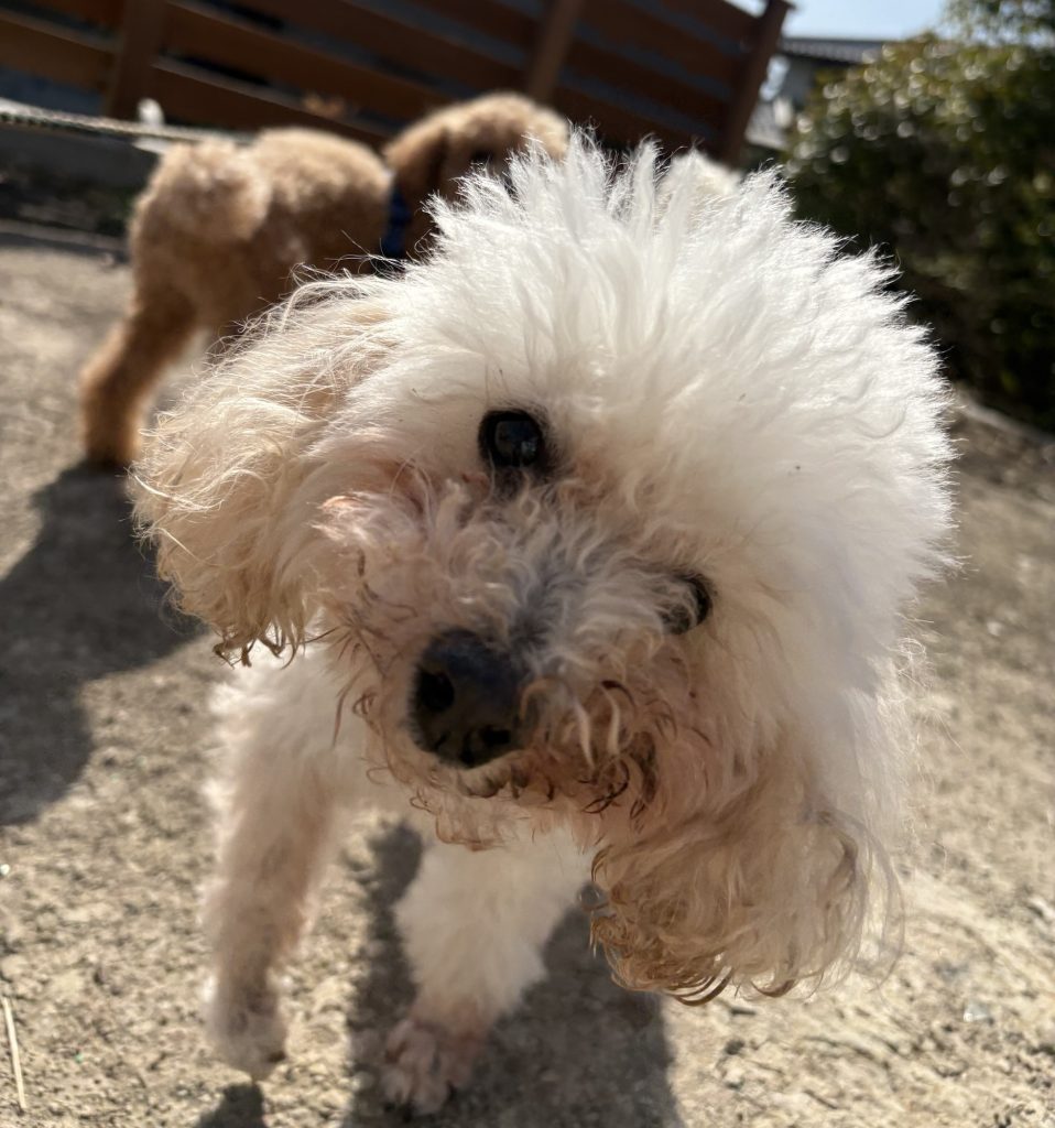 お留守番のナナさんです😊お散歩には出られませんかお庭で日光浴🍀ニコニコさんです🥰