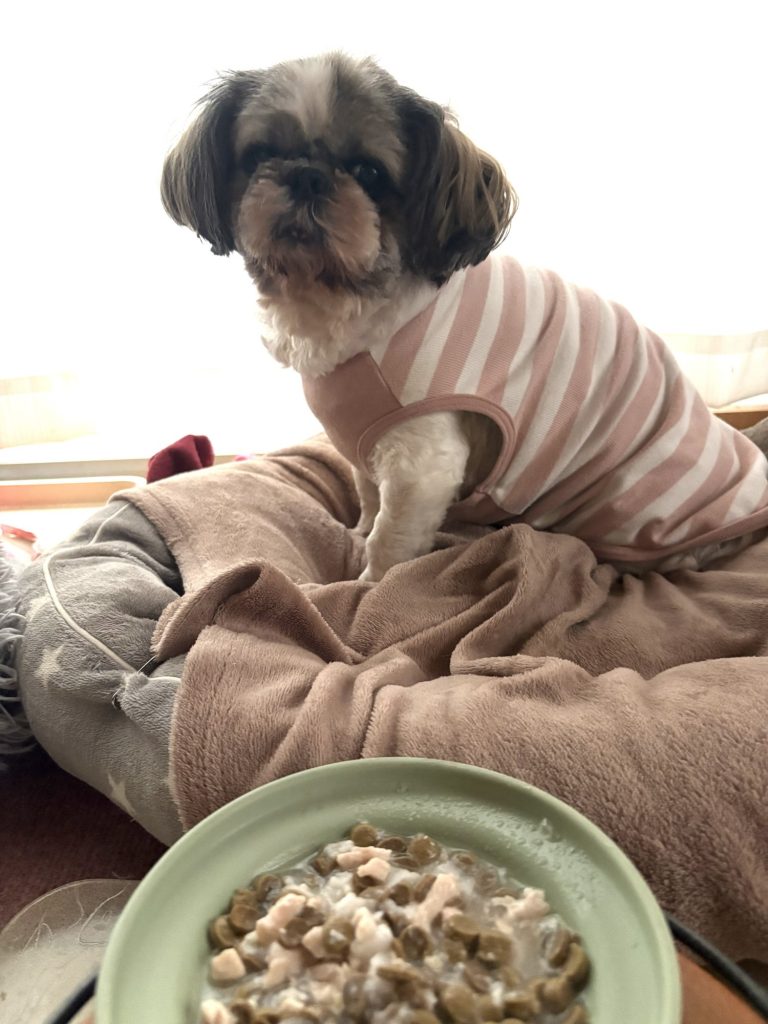 お留守番中のチャコさんです😊みんながキッチンでご飯中、呼べども現れずにデリバリーです😅しっかり食べておくれ〜🍀